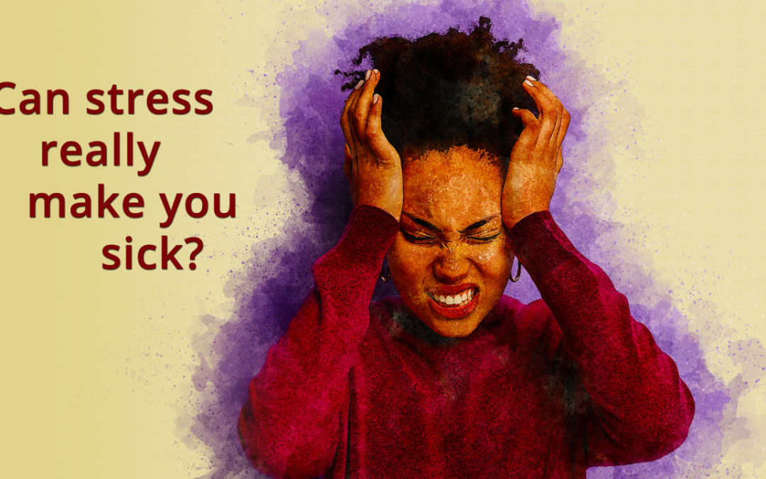 How Stress Can Make You Sick – Anxiety and Stress Center by holly houston | May 23, 2025 image of lady feeling stressed and overwhelmed. text in red, Can Stress Really Make You Sick?